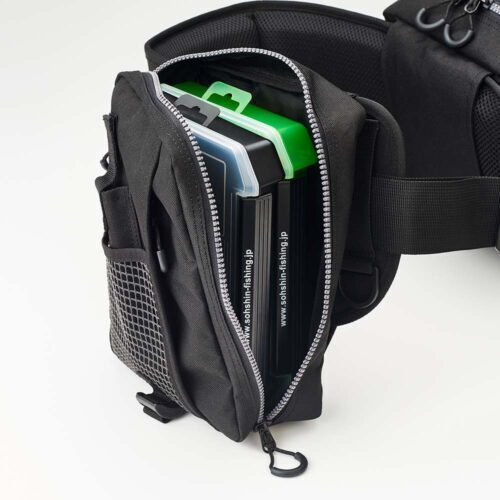 左右にルアーケースを収納できるポーチバッグがついています。